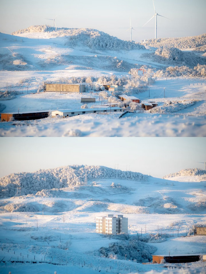 乌蒙山雾凇挂满枝头,阳光下银光闪闪。群山之巅、玉舍林间,千树万树凝霜挂雪,银装素裹的枝丫缀满冰晶,晨光一照,碎钻般的银光漫山遍野,风一吹簌簌飘落,南方独有的温柔雪韵,藏着最治愈的冬日浪漫。