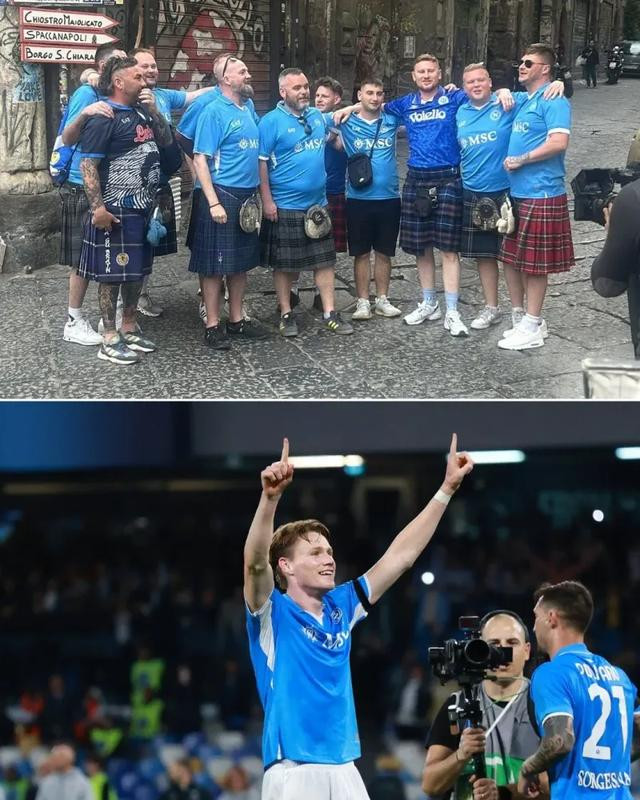 那不勒斯球迷为了支持麦克托米奈而穿上苏格兰裙