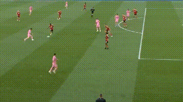 第24分钟,梅西本场第一个精彩时刻到来,他在前场和队友撞墙配合,随后用余光瞄到对手防线的空当,送出一次妙到毫巅的直塞,最终助攻阿尔巴破门,迈阿密国际也早早扳平比分。这脚直塞,梅西根本没有看人,完全靠感觉出球,这样的球感实在太可怕了,对手整条防线,在瞬间瓦解,迈阿密国际进球水到渠成。