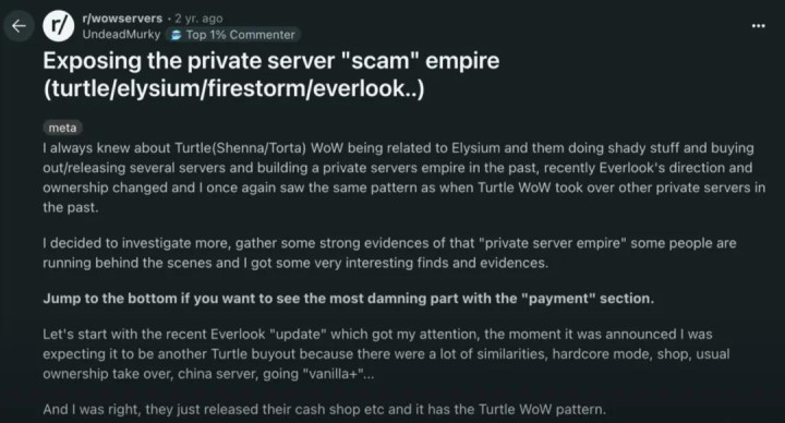 社区里一直流传着一个“私服帝国”的说法,背后人物据称是名为 Shana 的操盘者。传言称他会接管私服、强行加入游戏内置商店、贩卖满级角色,甚至与金币商合作牟利。暴雪的诉讼文件也暗示,Turtle 的创始人可能就是 Shana。