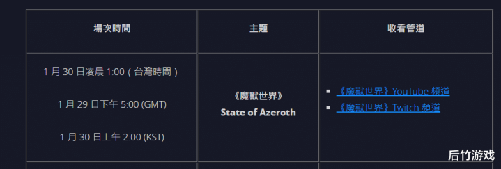 《魔兽世界》 1月30日(亚服时间凌晨1点)