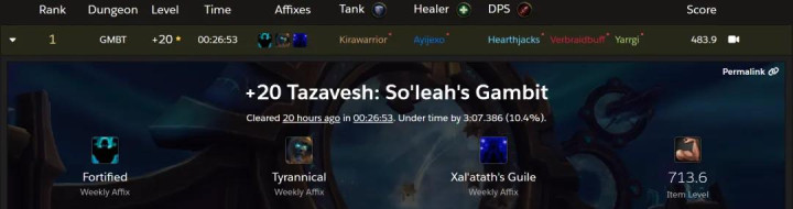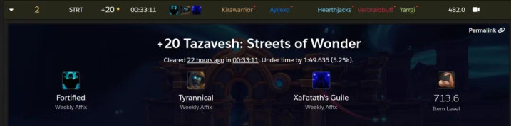 魔兽世界: 20层大秘境世界首限, 防战拿下双黄蛋, 黑箭猎统治赛季