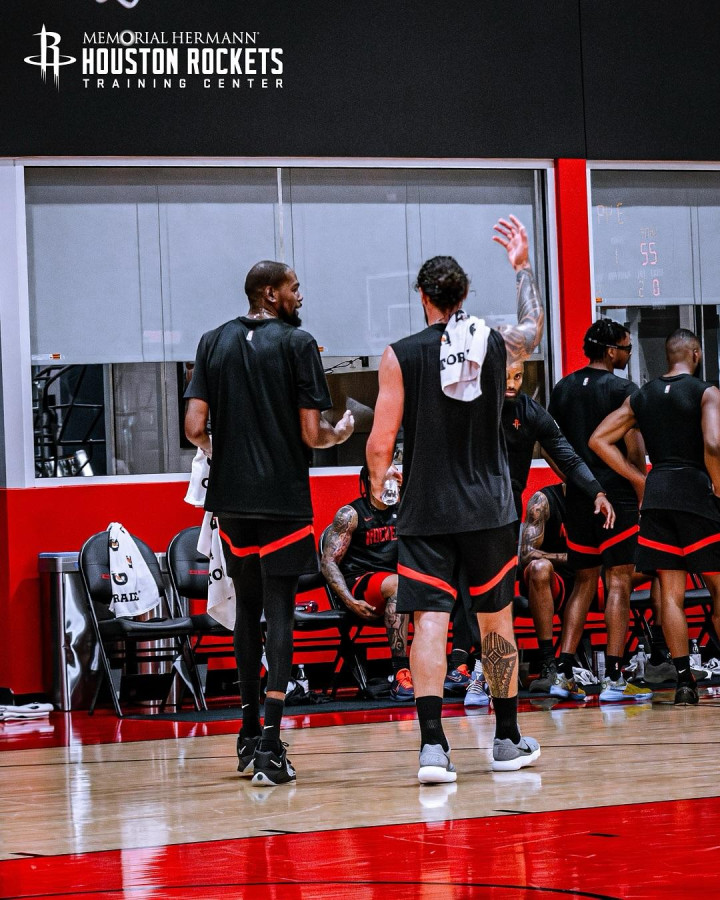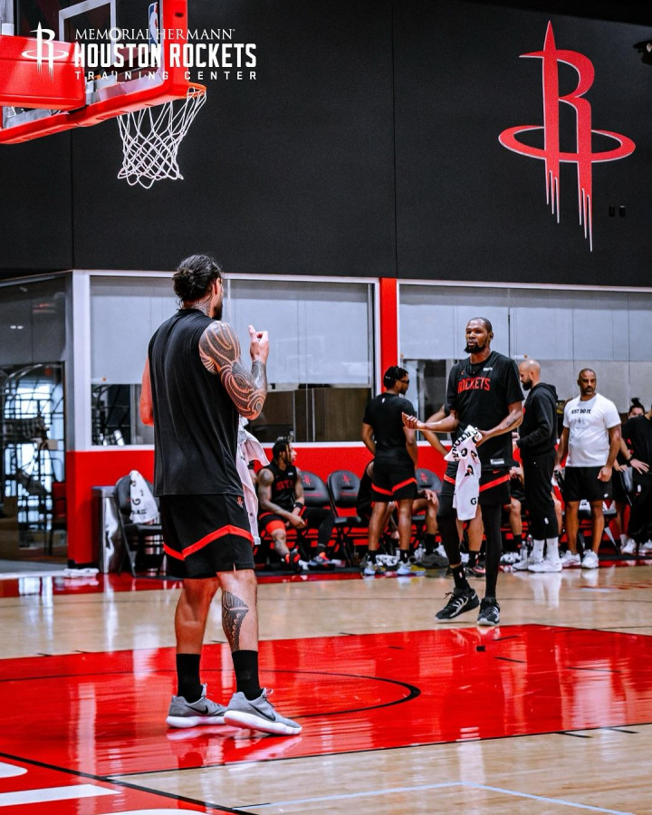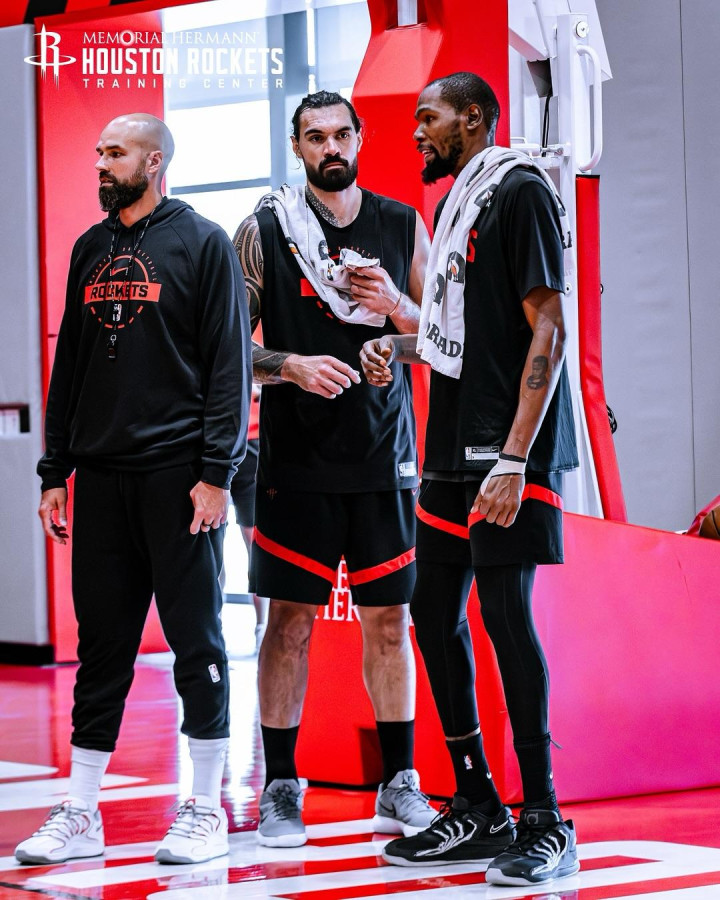火箭ins发布ins称,熟悉的化学反应新团队。KD与史蒂文正在逐步磨合。
