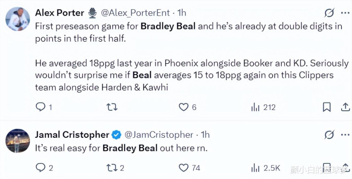 快船媒体与快船记者纷纷发来贺电:1.比尔能在挡拆中进攻,也能抢前场篮板,他让我印象深刻。